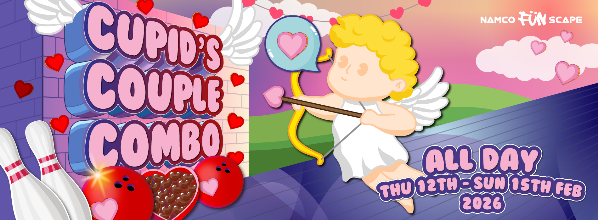 Whether you’re after something relaxed or a little competitive, Cupid’s Couple Combo gives you everything you need for a fun, no-stress Valentine’s out.